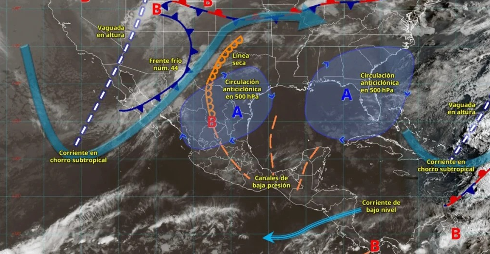 Mientras el frente frío 44 y una línea seca provocan riesgos de torbellinos y lluvias en el norte del país, una intensa onda de calor elevará las temperaturas por encima de los 45 °C en estados del Pacífico y el occidente del país.... Por: AGENCIAS