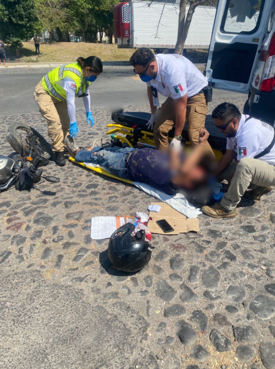 Personal del CRUM auxilia a motociclista accidentado en la colonia Nuevo Milenio