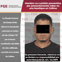 Hombre vinculado a proceso por robo en boutique de Colima