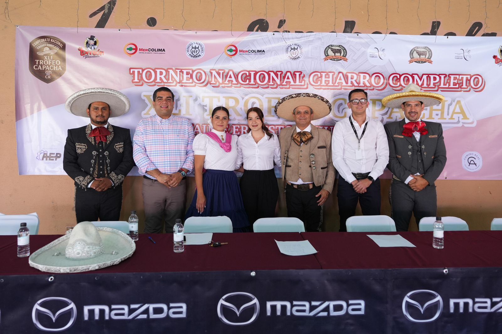 El presidente de la Asociación de Charros Camino Real, Daniel Orozco Espíritu, acompañado del director del Iffecol, Rodolfo Aguilar Dávalos, presentó el programa del torneo, destacando que este año se rendirá homenaje a Jaime Ernesto Schulte Brizuela (†), socio fundador e impulsor de la construcción del lienzo en 1982.