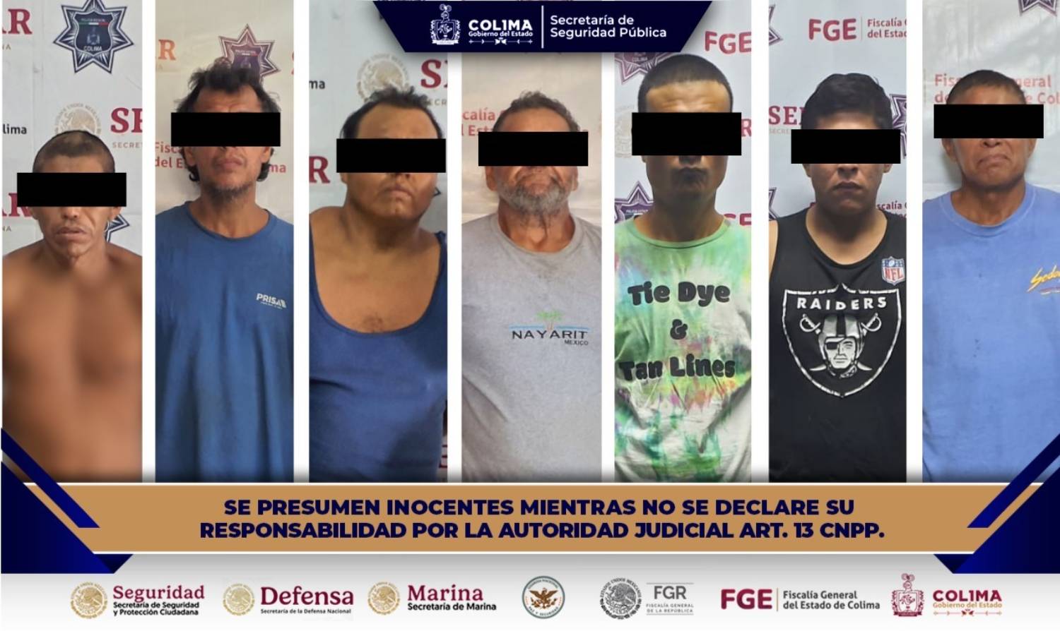 En seguimiento a las labores operativas coordinadas entre la Secretaría de Seguridad Pública del Gobierno del Estado de Colima y autoridades federales, estatales y municipales, se realizaron intervenciones en los municipios de Colima, Manzanillo y Tecomán, que derivaron en la detención de siete personas por su presunta participación en delitos contra la salud.