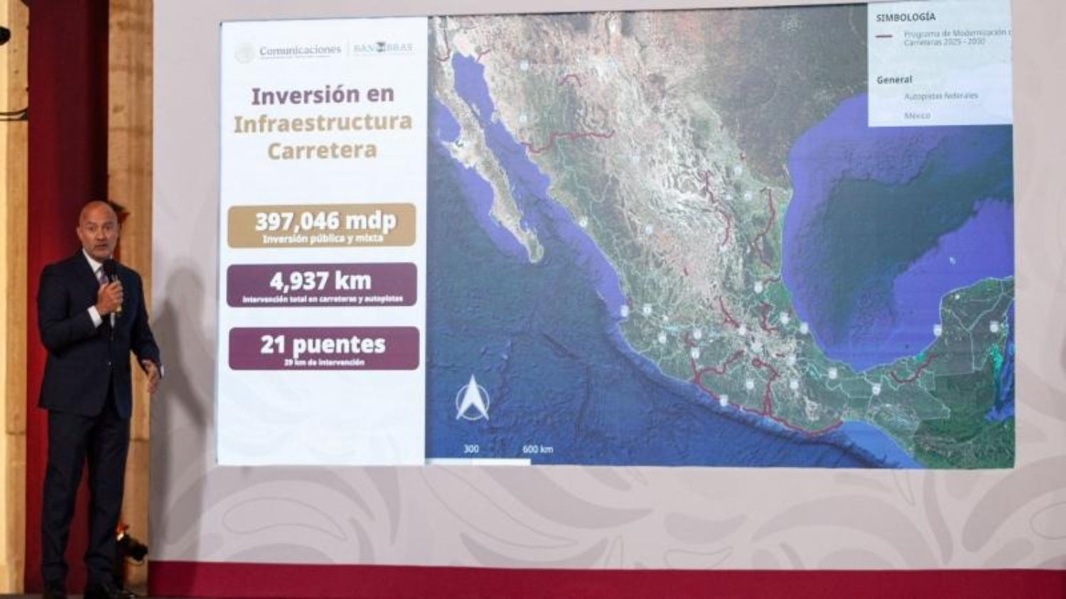 Desde el Salón Tesorería de Palacio Nacional, el director general de Banobras, Jorge Alberto Mendoza Sánchez, anunció una ofensiva de infraestructura para este 2026. La estrategia consiste en el despliegue de 150 mil millones de pesos destinados a 18 proyectos clave que buscan modernizar la conectividad terrestre del país.