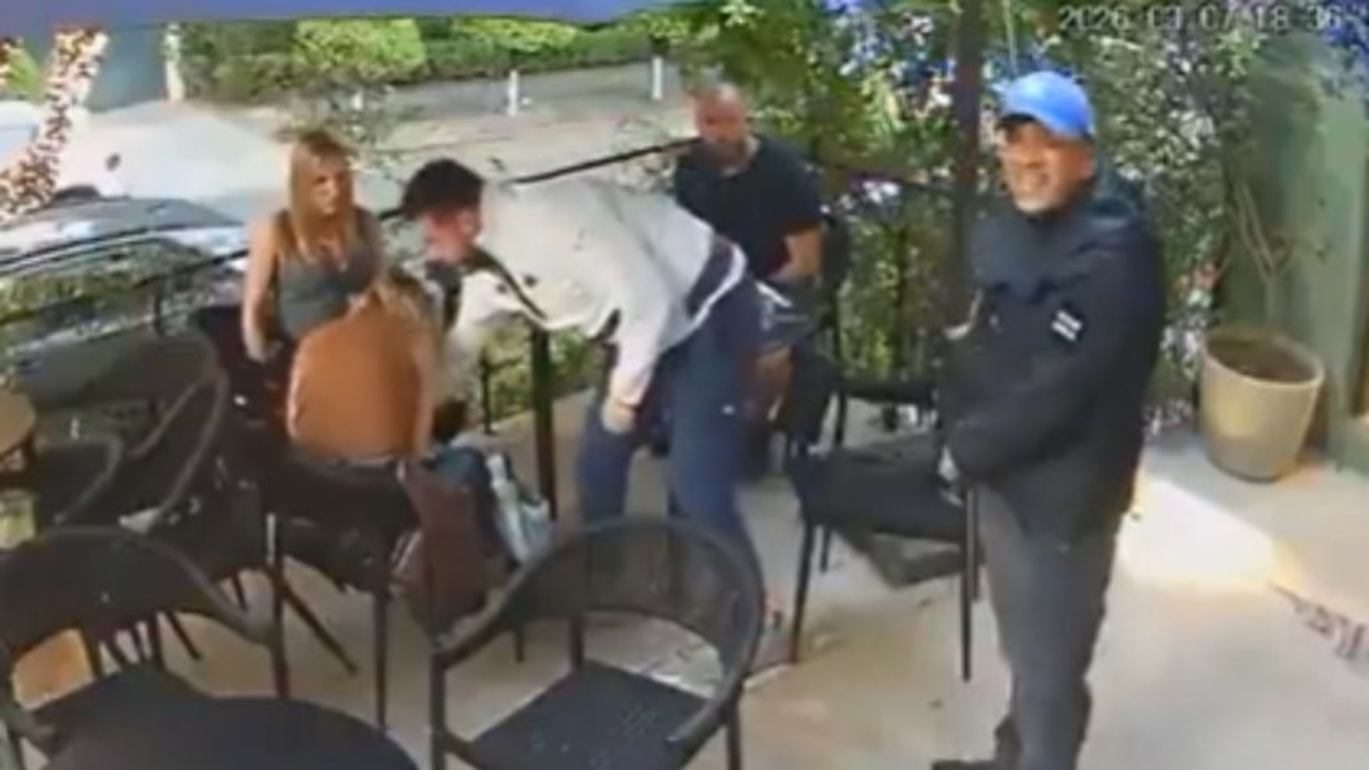 En el metraje se observa a un hombre con gorra azul subir a la terraza del establecimiento y amenazar directamente a dos mesas. Bajo la coacción de una pistola, el delincuente despojó a las víctimas de relojes, pulseras y dinero en efectivo antes de huir rápidamente por las escaleras.