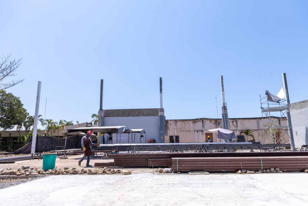 Agregó que se intervienen mil 202 metros cuadrados; ya se tiene el 100 por ciento de avance en las demoliciones, trabajos preliminares e instalaciones sanitarias; 18.5 por ciento en la colocación del firme y 30 por ciento de avance en la habilitación de la estructura metálica.