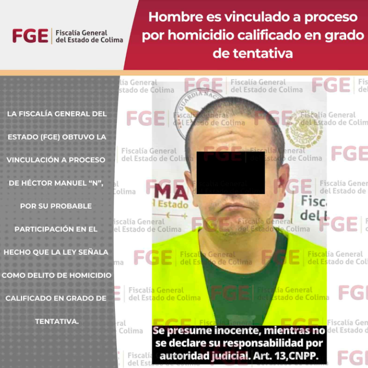 Este martes 7 de abril de 2026, la Fiscalía General del Estado (FGE) de Colima informó sobre los avances jurídicos en contra de Héctor Manuel “N”, imputado por el delito de homicidio calificado en grado de tentativa. La detención se logró mediante el cumplimiento de una orden de aprehensión tras meses de integración de la carpeta de investigación.